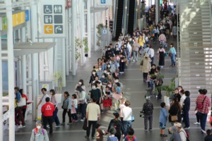 10時のテープカットと同時に、待ちかねた来場者の方々がいっせいに会場の中へ。各ブースやフリーマーケットなど、会場は通路が通れなくなるほどあっという間に人であふれ賑やかになりました。