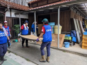今回の大雨では、福岡県内で甚大な被害が発生し、エフコープ生協による災害ボランティア活動が継続して行われております。生協くまもとでは、熊本地震時に全国の生協からたくさんの支援をいただいた恩返しの意味も込め、今回、エフコープ生協並びに日本生協連の皆様と東峰村で行われた災害ボランティア活動に参加しました。