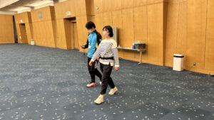 2人組に分かれてお互いの姿勢をチェックし、先生の説明を受けながら歩く練習をしました。最初はぎこちなく歩いていた方も、先生のアドバイスを受けると背筋が伸び、程よくリラックスした状態でスムーズに歩くことができていました。